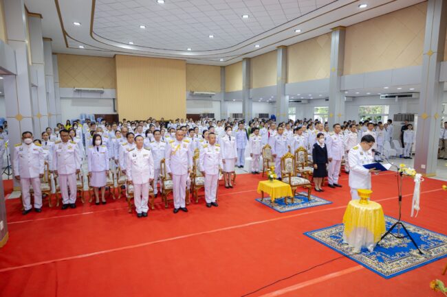 ภายในพิธี ผู้ว่าราชการจังหวัดพร้อมคู่สมรส เดินทางถึงบริเวณพิธี จากนั้นได้จุดธูปเทียนบูชาพระรัตนตรัย และถวายความเคารพหน้าพระบรมฉายาลักษณ์ พร้อมวางพวงมาลาถวายราชสักการะ และจุดธูปเทียนเครื่องทองน้อย จากนั้นพระสงฆ์ 10 รูป ประกอบพิธีทางศาสนา โดย ผู้ว่าราชการจังหวัดทอดผ้าไตร และข้าราชการชั้นผู้ใหญ่ ถวายจตุปัจจัย เครื่องไทยธรรม และภัตตาหารปิ่นโต พระสงฆ์เจริญพระพุทธมนต์ อนุโมทนา และกรวดน้ำอุทิศถวายเป็นพระราชกุศล