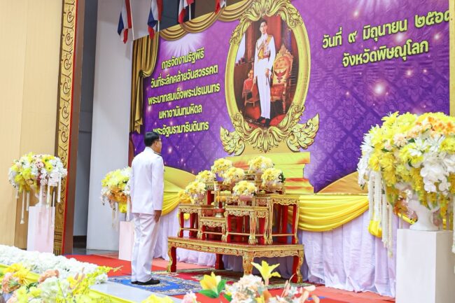 ต่อมา ผู้ว่าราชการจังหวัดพิษณุโลก กล่าวน้อมรำลึกในพระมหากรุณาธิคุณหน้าพระบรมฉายาลักษณ์พระบาทสมเด็จพระปรเมนทรมหาอานันทมหิดล พระอัฐมรามาธิบดินทร และนำข้าราชการ ร่วมพิธีทำบุญตักบาตรข้าวสารอาหารแห้งแด่พระสงฆ์ 20 รูป เพื่อถวายเป็นพระราชกุศล