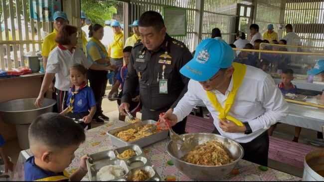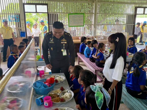 พันเอก เอกพงศ์ สุวรรณเวียง ผู้บังคับกองพันสรรพาวุธกระสุนที่ 23 กองบัญชาการช่วยรบที่ 3 ร่วมกิจกรรมจิตอาสาเลี้ยงอาหารกลางวันเด็ก โรงเรียนบ้านหัววังกร่าง หมู่ 9 ตำบลมะขามสูง อำเภอเมือง จังหวัดพิษณุโลก