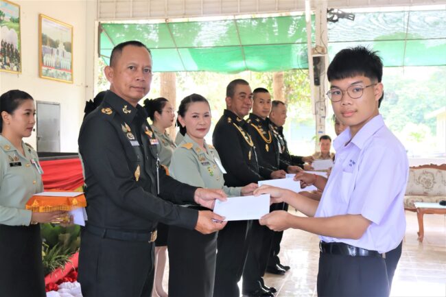 ผู้บัญชาการมณฑลทหารบทที่ 37/หัวหน้าสำนักงานสงเคราะห์ทหารผ่านศึก เขตเชียงราย มอบทุนการศึกษาบุตรทหารผ่านศึก