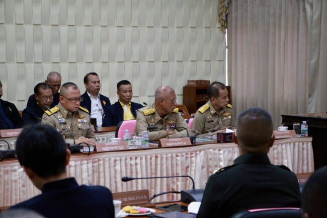 โดยมี (1) นายวุฒิพงษ์ สุภัควนิช รองผู้ว่าราชการจังหวัดในฐานะรองผอ.รมน.จว. (2) พล.ต.อัษฎาวุธ ปันยารชุน ผู้บัญชาการกองกำลังสุรสีห์ (3) พลตรี ชนมากรณ์ ภิบาลชนม์ ผู้บัญชาการมณฑลทหารบกที่ 17 หรือหน่วยบัญชาการสกัดกั้นและปราบปรามยาเสพติด สารตั้งต้นและเคมีภัณฑ์ ชายแดนภาคตะวันตก (นบ.ยส.17) และส่วนราชการในพื้นที่เข้าร่วมสรุปผลการดำเนินงาน