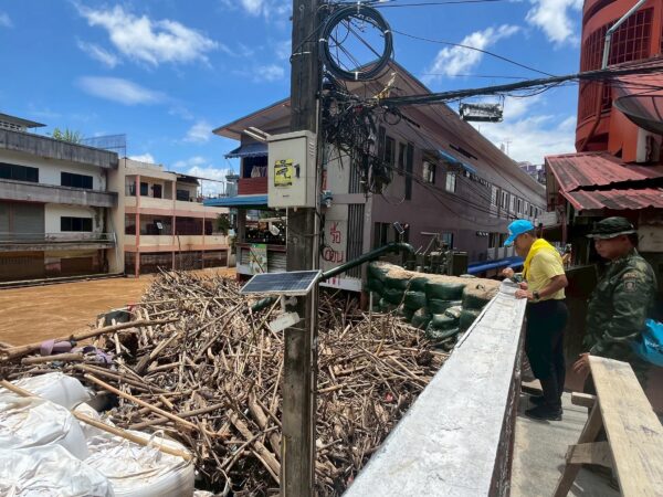 3. ตรวจเยี่ยมให้กำลังใจ และแนะนำแนวทางในการปฏิบัติ แก่เจ้าหน้าที่ภารกิจบรรจุกระสอบทรายและถุงบิ๊กแบค เพื่อซ่อมแซมพนังกันน้ำ พร้อมทั้งตรวจดูสภาพความเสียหาย