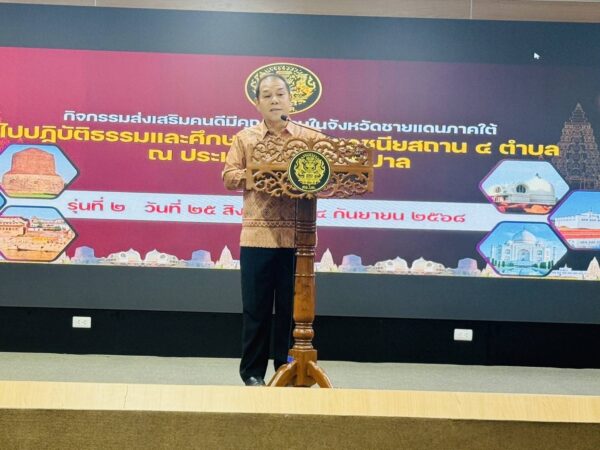 ผู้แสวงบุญชาวพุทธ ฯ รุ่น 2 เตรียมความพร้อม ก่อนเดินทางสู่ประเทศ อินเดีย–เนปาล เรียนรู้ สถานที่สำคัญทางพระพุทธศาสนา วันนี้ (3 สิงหาคม 2568) ที่ ห้องประชุมชั้น 2 ศูนย์ราชการจังหวัดชายแดนภาคใต้ อำเภอเมือง จังหวัดยะลา ดร.นพ.สมหมาย บุญเกลี้ยง ผู้ช่วยเลขาธิการศูนย์อำนวยการบริหารจังหวัดชายแดนภาคใต้ (ศอ.บต.) เป็นประธานพิธีเปิดการปฐมนิเทศกิจกรรม ส่งเสริมคนดีมีคุณธรรมในพื้นที่จังหวัดชายแดนภาคใต้ เดินทางไปปฏิบัติธรรมและศึกษาแหล่งสังเวชนียสถาน 4 ตำบล ณ ประเทศอินเดียและเนปาล ประจำปี 2568 ดร.นพ.สมหมาย บุญเกลี้ยง ผู้ช่วยเลขาธิการ ศอ.บต. กล่าวว่า ศอ.บต. ซึ่งมีภารกิจหน้าที่ในการ กำกับดูแลจังหวัดชายแดนภาคใต้ ตาม พ.ร.บ. การบริหารราชการจังหวัดชายแดนภาคใต้ พ.ศ. 2553 เน้นการพัฒนา เพื่อยกระดับคุณภาพชีวิตและสร้างสังคมสงบสุข จึงต้องให้ความสำคัญกับประชาชนทุก เชื้อชาติ ศาสนา ไม่ว่าจะคนกลุ่มใหญ่หรือกลุ่มน้อยในพื้นที่ ทั้งคนนับถือศาสนาพุทธ ศาสนาอิสลาม ศาสนาคริสต์ หรือคนไทยเชื้อสายจีน ด้วยการส่งเสริม สนับสนุน การจัดกิจกรรมตามอัตลักษณ์ ประเพณี วัฒนธรรม และศาสนาของทุกกลุ่มคนในพื้นที่อย่างเท่าเทียม เสมอภาค เพื่อให้ทุกกลุ่มคน อยู่ร่วมกันอย่างมีความสุข มีความรัก ความสามัคคี และสร้างขวัญกำลังใจให้กับพุทธศาสนิกชนในพื้นที่ ได้มีโอกาสครั้งนึงในชีวิต เดินทางไปปฏิบัติธรรม ณ สถานที่ตามพุทธประวัติ และที่สำคัญนำหลักคำสอนศาสนามาประยุกต์ใช้ในการดำรงชีวิต สำหรับครั้งนี้มีผู้เข้าร่วมจำนวน 200 คน ประกอบด้วยประชาชนผู้ได้รับผลกระทบจากสถานการณ์ความไม่สงบ กลุ่มฐานะยากจนตามเกณฑ์ จปฐ. กลุ่มเปราะบางและด้อยโอกาสทางสังคม ผู้สูงอายุ บุคคลทั่วไปในพื้นที่เสี่ยงภัยตามฐานข้อมูลของ กอ.รมน.ภาค 4 สน. รวมถึงผู้ทำคุณประโยชน์ต่อการแก้ไขปัญหาและพัฒนาพื้นที่จังหวัดชายแดนภาคใต้ ตลอดจนเจ้าหน้าที่อำนวยความสะดวก ซึ่งมีกำหนดเดินทางระหว่างวันที่ 10–20 สิงหาคม 2568 นี้