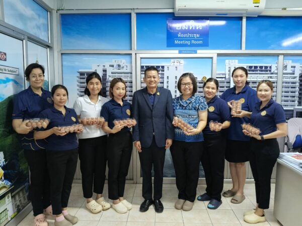 ในการนี้ นายศุภสัณห์ ศิลป์ชูศรี พาณิชย์จังหวัดแพร่ เป็นผู้แทนในการมอบไข่ไก่ให้กับเจ้าหน้าที่ฯ และขอขอบพระคุณ คุณนุสรา ธรรมจีรัญ หุ้นส่วนผู้จัดการ ห้างหุ้นส่วนจำกัด นุสราฟาร์ม ที่ให้ความอนุเคราะห์และแสดงน้ำใจช่วยเหลือมา ณ โอกาสนี้ด้วย