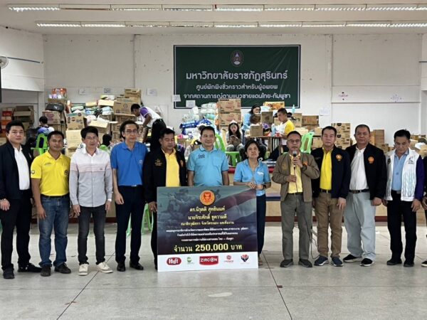 ในการนี้ ดร.นิรุตติ สุทธินนท์ และนายจิระศักดิ์ ชูความดี สมาชิกวุฒิสภา จังหวัดระนอง และทีมงาน ตลอดถึง คณะอนุกรรมาธิการและที่ปรึกษาในคณะอนุกรรมาธิการด้านจัดหางานและพัฒนาฝีมือแรงงาน วุฒิสภา หน่วยงานเอกชน อาทิ บริษัท เซอร์คอน พาวเวอร์ โซลูชั่น จำกัด มูลนิธิทีวีพูล บริษัท ผลไม้กระป๋องประจวบ จำกัด บริษัท CO CO Walk จำกัด และบริษัท ไอพาวเวอร์ จำกัด ได้รวบรวมของอุปโภคบริโภคมูลค่า 250,000 บาท เพื่อมอบแก่ทหารกองบัญชาการกองกำลังสุรนารี และศูนย์อพยพมหาวิทยาลัยราชภัฏสุรินทร์ จังหวัดสุรินทร์