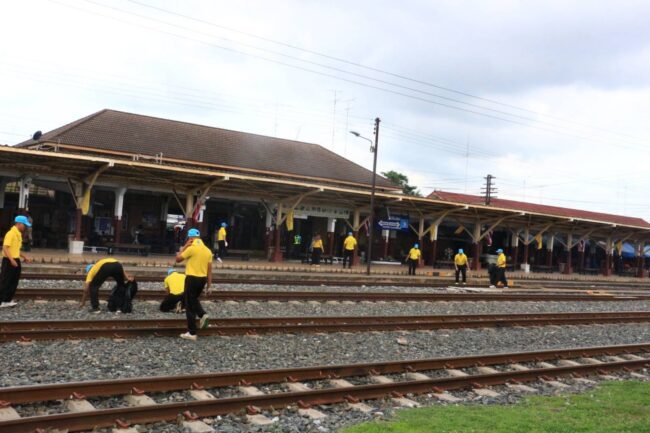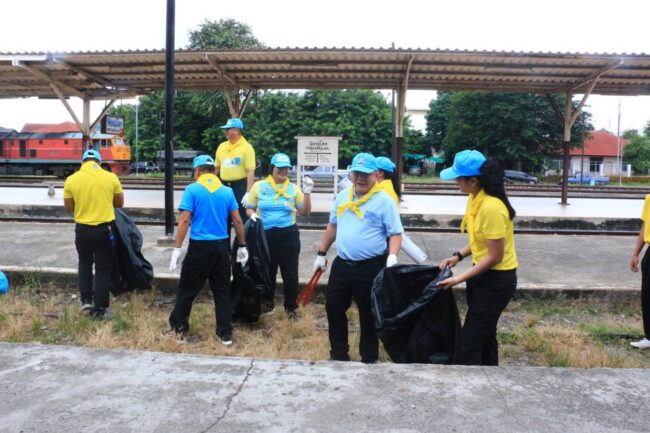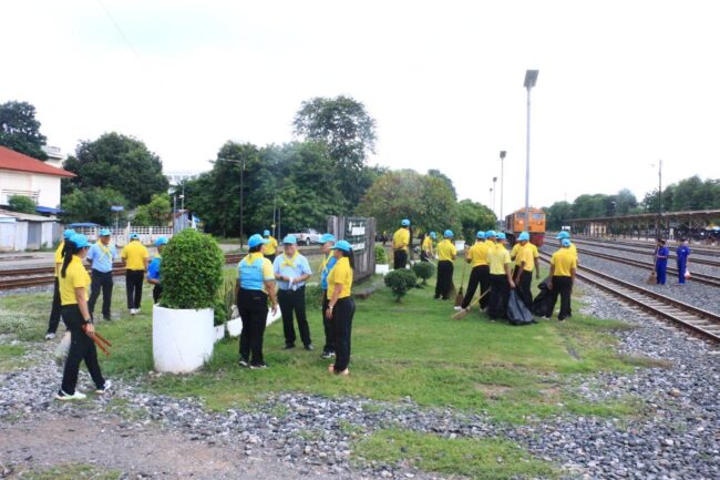 รอง มทน.3 พร้อมรรท.รองเสธ.ทน.3 ,ฝ่ายอำนวยการ นำกำลังพลจิตอาสา 904 ,กำลังพลจิตอาสาพระราชทานและเจ้าหน้าที่จัดกิจกรรมจิตอาสาพัฒนาทำความสะอาด , ตัดหญ้า,เก็บขยะ ปรับภูมิทัศน์โดยรอบสถานีรถไฟ