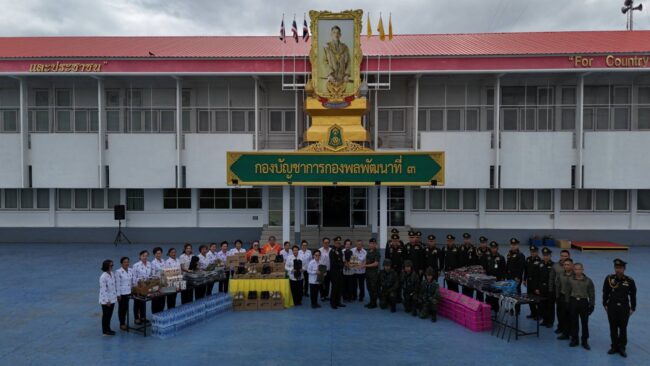เมื่อวันทื่ 14 สิงหาคม 2568 กองพลพัฒนาที่ 3 นำโดย พลตรี สกนธ์ เพชรทอง ผู้บัญชาการกองพลพัฒนาที่ 3 ร่วมกับ สมาคมสตรีอาสาสมัครรักษาดินแดนจังหวัดพิษณุโลก (ส.อ.ร.ด.) นำโดย คุณประนอม ทิวะพันธุ์ นายกสมาคมสตรีอาสาสมัครรักษาดินแดนจังหวัดพิษณุโลก และผู้ที่มีจิตอาสา ได้จัดหาสิ่งอุกรณ์ในการปฏิบัติภารกิจสนับสนุน กองทัพภาคที่ 2 เพื่อปกป้องอธิปไตยของชาติ และร่วมมอบสิ่งของ และอุปกรณ์ที่จำเป็นให้กับกำลังพลที่ปฏิบัติภารกิจทางการช่าง ตามแนวชายแดน เพื่อเป็นขวัญและกำลังใจให้กับกำลังพลที่ปฏิบัติงาน ณ กองบัญชาการกองพลพัฒนาที่ 3 ทั้งนี้ พลตรี สกนธ์ เพชรทอง ผู้บัญชาการกองพลพัฒนาที่ 3 ได้กล่าวขอบคุณ คณะสมาคมสตรีอาสาสมัครรักษาดินแดนจังหวัดพิษณุโลก และผู้ที่มีจิตอาสาที่ได้ร่วมจัดหาสิ่งอุปกรณ์มามอบให้ในครั้งนี้ ปรีชา นุตจรัส รายงาน ข่าวพิษณุโลก