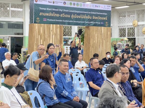 วันศุกร์ที่ 15 สิงหาคม 2568 เวลา 08.00 น. นายสมชัย เลิศประสิทธิพันธ์ ผู้ว่าราชการจังหวัดแพร่ มอบหมายให้ นายคุณากร คชหิรัญ รองผู้ว่าราชการจังหวัดแพร่ เป็นประธานกล่าวเปิดงานเสวนา “สานพลังไทย – สวีเดน สู่เมืองไม้ที่ยั่งยืน” และให้การต้อนรับ คุณอรุณรุ่ง โพธิ์ทอง ฮัมฟรียส์ เอกอัครราชทูต ณ กรุงสตอกโฮล์ม นายแพร์ ลินเนอร์ อุปทูต สถานเอกอัครราชทูตสวีเดน ประจำประเทศไทย พร้อมคณะฯ โดยกิจกรรมเสวนา 1 หัวข้อ“สานพลังไทย – สวีเดนสู่เมืองไม้ที่ยั่งยืน Unlocking the wood City Development : Local Empowerment to Global Impact ”เสวนา 2 หัวข้อ “ปลุกพลังเมืองไม้ : Wood and the city, could this be a game changer”ณ หอประชุมตรีเทพ สถาบันนวัตกรรมด้านป่าไม้ จังหวัดแพร่ ตำบลในเวียง อำเภอเมืองแพร่ จังหวัดแพร่ ในการนี้ นายศุภสัณห์ ศิลป์ชูศรี พาณิชย์จังหวัดแพร่ พร้อมด้วย นางสาวปัทมาวดี ศรีเจริญ