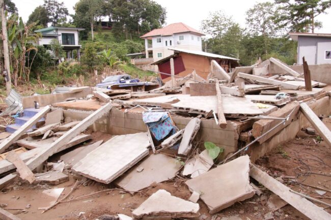 โดยได้รับผลกระทบอย่างรุนแรงจากพายุ “วิภา” ทำให้ บ้านพักอาศัยถูกน้ำป่าพัดพาเสียหายทั้งหมด