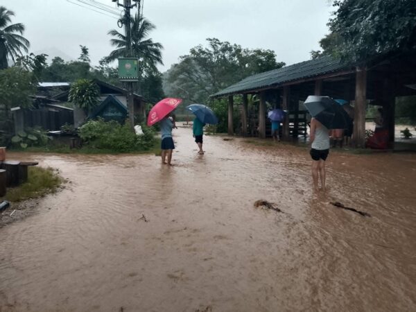 ซึ่งตั้งแต่ เวลา 05.00 น. เกิดฝนตกหนักต่อเนื่องในพื้นที่จังหวัดแพร่ ส่งผลให้ลำน้ำสาขาเอ่อล้นตลิ่ง เกิดน้ำป่าไหลหลากเข้าท่วมบ้านปากห้วยอ้อย หมู่ที่ 5 และบ้านห้วยฮ่อม หมู่ที่ 13 ตำบลบ้านเวียง อำเภอร้องกวาง ระดับน้ำบางจุดสูงกว่า 50 เซนติเมตร บ้านเรือนและพื้นที่การเกษตรหลายแห่งได้รับผลกระทบ โดยเฉพาะข้าวโพด ชาวบ้านต้องเร่งขนย้ายสิ่งของขึ้นที่สูงเพื่อป้องกันความเสียหาย