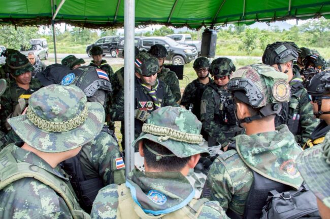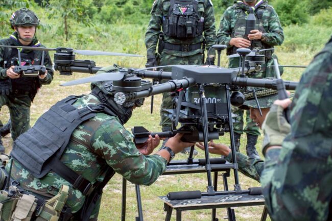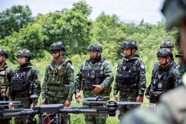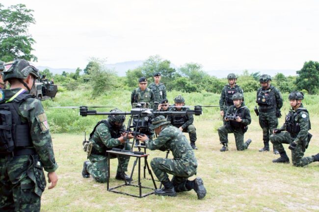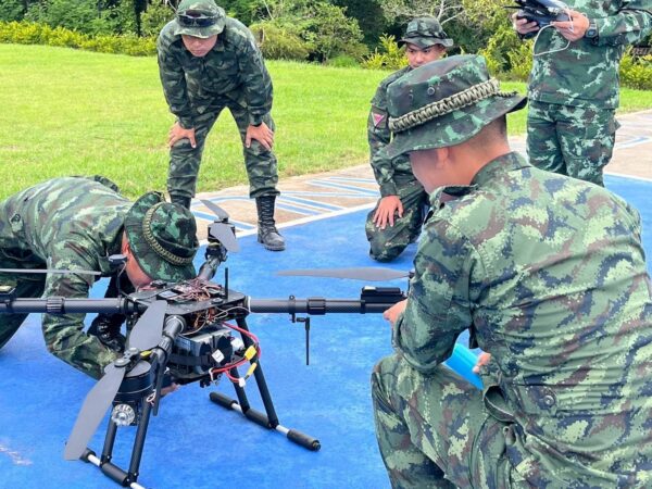 ห้วงวันที่ 7 – 16 ส.ค. 68 กองกำลังนเรศวร โดย หน่วยเฉพาะกิจราชมนู จัดการฝึกอบรมหลักสูตรผู้บังคับอากาศยานไร้คนขับโจมตีทิ้งระเบิดทางยุทธวิธี (Unmanned Aerial System – UAS Combat Drone Operator) รุ่นที่ 5 ซึ่งเนื้อหาตลอดหลักสูตร ประกอบไปด้วย การเรียนรู้ภัยคุกคามจากอากาศยานไร้คนขับและยุทธวิธีสมัยใหม่, การถอดบทเรียนจากประสบการณ์การใช้โดรนในสนามรบ, การตรวจการณ์ด้วยโดรน, การกำหนดที่ตั้งเป้าหมาย, การปรับการยิง ป. และ ค. ด้วยโดรนตรวจการณ์, การทำลูกระเบิดแสวงเครื่อง, การทำโดรนตรวจการณ์และโดรนโจมตี, การดูแลบำรุงรักษาอากาศยานไร้คนขับ และโปรแกรมแอปพลิเคชันแผนที่ภาพถ่ายดาวเทียม