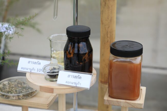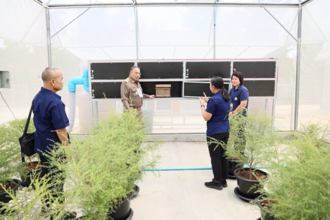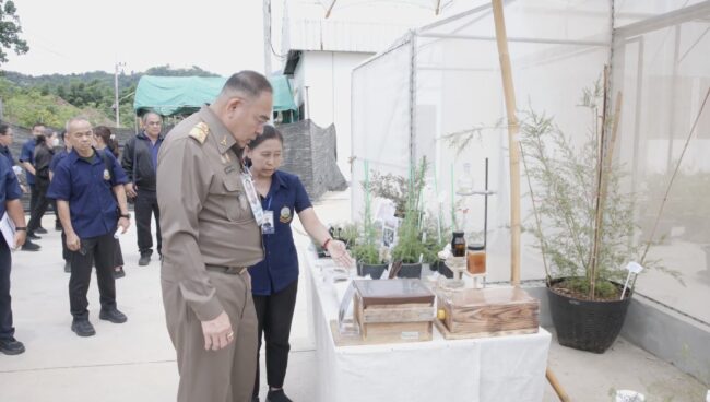 ต่อจากนั้น องคมนตรีได้ตรวจเยี่ยมความก้าวหน้าการก่อสร้างลานกิจกรรมการเรียนรู้ เพื่อใช้จัดกิจกรรมการเรียนรู้ร่วมกัน และกิจกรรมสาธารณะต่าง ๆ ของมูลนิธิฯ พร้อมทั้งตรวจเยี่ยมการศึกษาวิจัยการปลูกเลี้ยงพืชมานูก้า ซึ่งเป็นพืชเศรษฐกิจใหม่ที่มีศักยภาพในการผลิตน้ำผึ้งคุณภาพสูง “น้ำผึ้งมานูก้า” อุดมด้วยสารเมทิลไกลออกซาล (Methylglyoxal – MGO) ที่มีคุณสมบัติในการต้านเชื้อแบคทีเรียและช่วยสมานแผล มีคุณค่าทางสุขภาพสูง และเป็นมิตรต่อสิ่งแวดล้อม โดยมูลนิธิโครงการหลวงมุ่งเน้นให้การปลูกพืชมานูก้าเป็นทางเลือกใหม่ของเกษตรกรบนพื้นที่สูง ควบคู่กับการส่งเสริมการผลิตน้ำผึ้งมานูก้าจากชันโรงและผึ้งในอนาคต เพื่อสร้างอาชีพและรายได้อย่างยั่งยืน