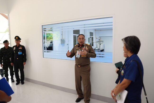 จากนั้น องคมนตรีได้ตรวจเยี่ยมอาคารวิจัยผลิตภัณฑ์ ซึ่งจัดตั้งขึ้นเพื่อเป็นศูนย์กลางในการวิจัย ทดสอบ และพัฒนาผลิตผลจากโครงการหลวง ต่อยอดสู่ผลิตภัณฑ์แปรรูปอาหารและผลิตภัณฑ์ในรูปแบบต่าง ๆ ที่มีคุณภาพได้มาตรฐานสากล ส่งถึงผู้บริโภคด้วยความมั่นใจ ตั้งแต่กระบวนการผลิตต้นน้ำจนถึงปลายน้ำ