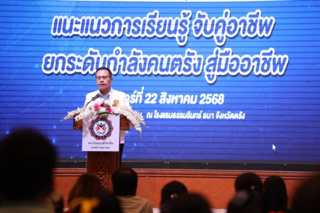 สว.นิรุตติ ปาฐกถาพิเศษ ในงานสัมมนาเชิงปฏิบัติการ E-Workforce Ecosystem Platform (EWE) แนะแนวการเรียนรู้ จับคู่อาชีพ ยกระดับกำลังคนตรังสู่มืออาชีพ