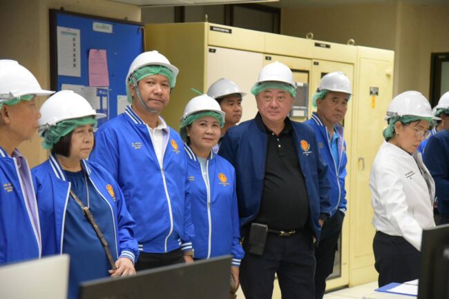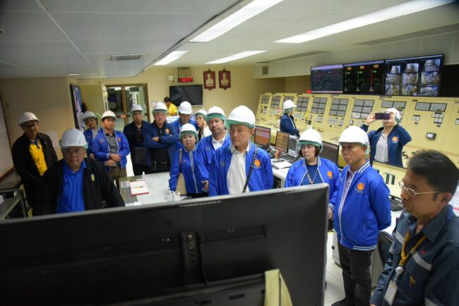 และโรงไฟฟ้า ณ อาคารที่ทำการโรงไฟฟ้า เขื่อนรัชชประภา การไฟฟ้าฝายผลิตแห่งประเทศไทย โดยนายสุบิน เนตรสว่าง ผู้อำนวยการเขื่อนรัชชระภา ให้การต้อนรับและให้ข้อมูลภาพรวมสรุปถึงกำลังการผลิตไฟฟ้าของ กฟผ 31,081 MW โดยเฉพาะในพื้นที่ภาคใต้ ที่มีกำลังการผลิต 3,074 MW มาจากการผลิตของโรงไฟฟ้าเขื่อนรัชชประภา 240 MW นอกจากนี้ยังได้นำเสนอเกี่ยวกับโครงการด้านพลังงานทพแทนในอนาคตของ กฟผ. ทั้งในเรื่องของโรงไฟฟ้าพลังงานนิวเคลียร์แบบ SMRโครงการ HYDRO-FLOATING SOLAR HYBRID โดยในส่วนของ กฟผ.เขื่อนรัชชประภา ได้รับมอบหมายให้จัดหาพลังงานแสงอาทิตย์หุ่นลอยน้ำ 140 เมกะวัตต์ ในปี 2577 และส่วนต่อขยาย 100 เมกะวัตต์ในปี 2579 รวมทั้งสิ้น 240 เมกะวัตต์ เพื่อมุ่งสู่การลดการปลดปล่อยก๊าซเรือนกระจกตามแผนของประเทศ
