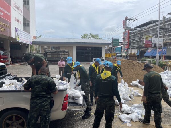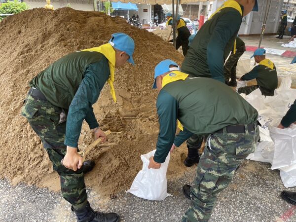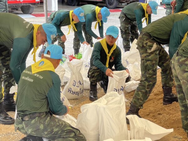 จิตอาสาภัยพิบัติกองพันทหารม้าที่ 9 ร่วมกับ เทศบาลนครพิษณุโลก เร่งบรรจุกระสอบทรายทำแนวกั้นน้ำแจกจ่ายประชาชนรับมือน้ำท่วมฉับพลัน น้ำล้นตลิ่งจากแม่น้ำน่าน เขตอำเภอเมืองพิษณุโลก