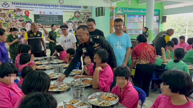 เมื่อวันที่ 4 ก.ย. 68 เวลา 11.00 น. พลตรี จักรวีร์ เสนีย์วรยุทธ์ ผู้บัญชาการมณฑลทหารบกที่ 37 ร่วมกับ กองอำนวยการรักษาความมั่นคงภายในจังหวัดเชียยงราย, บริษัท ไร่ชาฉุยฟง จำกัด, บริษัท ท็อปเมทอล เทรดดิ้ง จำกัด, บริษัท หลงชิน อินเตอร์เนชั่นแนล โลจิสติกส์ จำกัด, สมเกียรติพืชไร่, โครงการบ้านจัดสรรนอร์ทวินท์, GT SPORT DESIGN, บริษัท จิ่นหัว อิมปอร์ต แอนด์ เอ็กปอร์ต จำกัด ดำเนินโครงการมอบอุปกรณ์สนามเด็กเล่น ผงซักผ้า และสนับสนุนอาหารกลางวันให้กับโรงเรียน