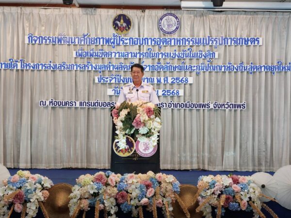 วันจันทร์ที่ 8 กันยายน 2568 เวลา 13.30 น. นายสมชัย เลิศประสิทธิพันธ์ ผู้ว่าราชการจังหวัดแพร่ เป็นประธานในพิธีเปิดกิจกรรมสัมมนาเชิงปฎิบัติการและเสวนาแลกเปลี่ยนเรียนรู้ กิจกรรมพัฒนาศักยภาพผู้ประกอบการอุตสาหกรรมแปรรูปการเกษตรเพื่อเพิ่มขีดความสามารถในการแข่งขันเชิงลึก ภายใต้โครงการส่งเสริมการสร้างมูลค่าผลิตภัณฑ์จากอัตลักษณ์และภูมิปัญญาท้องถิ่นสู่ตลาดยุคใหม่ ( Local wisdom to global ) ให้กับผู้ประกอบการ วิสาหกิจชุมชน ผู้สนใจ และเจ้าหน้าที่ จำนวน 80 ราย เพื่อเสริมสร้างและพัฒนาองค์ความรู้ให้กับผู้ประกอบการอุตสาหกรรม SMEs วิสาหกิจชุมชน และเผยแพร่ประชาสัมพันธ์ศักยภาพของผู้ประกอบการที่เข้าร่วมกิจกรรมฯ