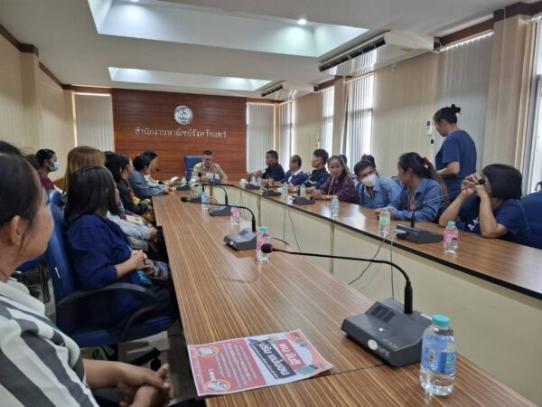 เวลา 10.00 น. นางสร้อย ยืนยง ตัวแทนเกษตรกรตำบลสะเอียบ อำเภอสอง จังหวัดแพร่ พร้อมด้วยนายณัฐปคัลภ์ ศรีคำภา นายกองค์การบริหารส่วนตำบลสะเอียบ นายทรงศักดิ์ สันป่าแก้ว ประธานสภาเกษตรกรจังหวัดแพร่ นายเอกนุรินทร์ สาใจ สมาชิกสภาเกษตรกรจังหวัดแพร และนายเอก ใจตรง สมาชิกสภาเกษตรเขต 2 อำเภอสอง จังหวัดแพร่ พร้อมด้วยเกษตรกรจำนวน 50 ราย ได้เข้าร่วมประชุมหารือเพื่อขอให้สำนักงานฯ ช่วยแก้ไขปัญหาราคาข้าวโพดตกต่ำและช่วยควบคุมและพยุงราคารับซื้อข้าวโพดเลี้ยงสัตว์ ปี 2568 ณ ห้องประชุมพญาพล ชั้น 3 สำนักงานพาณิชย์จังหวัดแพร่ โดยแจ้งว่า ราคาที่ผู้ประกอบการในพื้นที่ไม่เป็นไปตามประกาศกระทรวงพาณิชย์ดังกล่าว