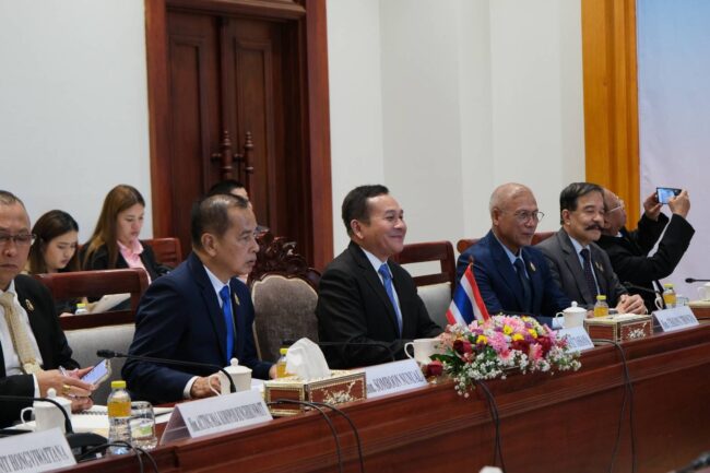 และพลโท สุวอน เลืองบุนมี รองประธานสภาแห่งชาติ กับผู้แทนสภาแห่งชาติ ได้ประชุมทวิภาคีร่วมกับพลเอก สวัสดิ์ ทัศนา ประธานคณะกรรมาธิการ และคณะกรรมาธิการ เพื่อแลกเปลี่ยนความคิดเห็นเกี่ยวกับบทบาทของฝ่ายนิติบัญญัติ ได้แก่ ความร่วมมือ และความสัมพันธ์ในด้านกลาโหม เพื่อส่งเสริมทางการทหาร และความมั่นคง การพัฒนาศักยภาพกองทัพ และการจัดสรรสิทธิประโยชน์ของกำลังพล รวมทั้งการพัฒนาศักยภาพ และความเชี่ยวชาญด้าน AI และเทคโนโลยีของกองทัพในการป้องกันประเทศ รวมถึงยังมีการปรึกษาหารือและแลกเปลี่ยนความคิดเห็นในการปฏิบัติหน้าที่ในเรื่องของความมั่นคงและการทหารถึงภัยคุกคามตามแนวชายแดน เช่น ยาเสพติดตามแนวชายแดน การลักลอบค้าสัตว์ป่าและพืชป่า การลักลอบเข้าเมืองและแรงงานผิดกฎหมาย การก่อการร้าย ภัยธรรมชาติ การโจรกรรม ยานพาหนะ โรคระบาด หรือบุคคลที่เป็นอันตรายเป็นภัยต่อความมั่นคงของไทยและลาว สินค้าเถื่อน การค้าประเวณี และการค้ามนุษย์ หรือกรณีบุคคลสองสัญชาติของทั้งสองประเทศที่จำเป็นต้องอาศัยการมีส่วนร่วมของภาคส่วนต่าง ๆ อย่างจริงจัง โดยเฉพาะภาคประชาชนที่อาศัยอยู่ตามแนวชายแดน เพื่อให้ข้อมูลเบาะแสการกระทำผิดกฎหมายต่าง ๆ ของบุคคลที่เป็นอันตรายเป็นภัยต่อความมั่นคง และความสงบเรียบร้อยตามแนวชายแดนทั้งสองประเทศ ทั้งนี้ ในส่วนของการร่วมมือระหว่างกันในเรื่องกำหนดยุทธศาสตร์การป้องกันและรักษาความสงบเรียบร้อยตามแนวชายแดนแบบมีส่วนร่วมถือว่ามีความสำคัญที่ทั้งไทยและลาวควรขับเคลื่อนผลักดันร่วมกัน