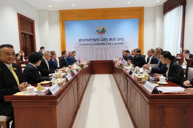 และพลโท สุวอน เลืองบุนมี รองประธานสภาแห่งชาติ กับผู้แทนสภาแห่งชาติ ได้ประชุมทวิภาคีร่วมกับพลเอก สวัสดิ์ ทัศนา ประธานคณะกรรมาธิการ และคณะกรรมาธิการ เพื่อแลกเปลี่ยนความคิดเห็นเกี่ยวกับบทบาทของฝ่ายนิติบัญญัติ ได้แก่ ความร่วมมือ และความสัมพันธ์ในด้านกลาโหม เพื่อส่งเสริมทางการทหาร และความมั่นคง การพัฒนาศักยภาพกองทัพ และการจัดสรรสิทธิประโยชน์ของกำลังพล รวมทั้งการพัฒนาศักยภาพ และความเชี่ยวชาญด้าน AI และเทคโนโลยีของกองทัพในการป้องกันประเทศ รวมถึงยังมีการปรึกษาหารือและแลกเปลี่ยนความคิดเห็นในการปฏิบัติหน้าที่ในเรื่องของความมั่นคงและการทหารถึงภัยคุกคามตามแนวชายแดน เช่น ยาเสพติดตามแนวชายแดน การลักลอบค้าสัตว์ป่าและพืชป่า การลักลอบเข้าเมืองและแรงงานผิดกฎหมาย การก่อการร้าย ภัยธรรมชาติ การโจรกรรม ยานพาหนะ โรคระบาด หรือบุคคลที่เป็นอันตรายเป็นภัยต่อความมั่นคงของไทยและลาว สินค้าเถื่อน การค้าประเวณี และการค้ามนุษย์ หรือกรณีบุคคลสองสัญชาติของทั้งสองประเทศที่จำเป็นต้องอาศัยการมีส่วนร่วมของภาคส่วนต่าง ๆ อย่างจริงจัง โดยเฉพาะภาคประชาชนที่อาศัยอยู่ตามแนวชายแดน เพื่อให้ข้อมูลเบาะแสการกระทำผิดกฎหมายต่าง ๆ ของบุคคลที่เป็นอันตรายเป็นภัยต่อความมั่นคง และความสงบเรียบร้อยตามแนวชายแดนทั้งสองประเทศ ทั้งนี้ ในส่วนของการร่วมมือระหว่างกันในเรื่องกำหนดยุทธศาสตร์การป้องกันและรักษาความสงบเรียบร้อยตามแนวชายแดนแบบมีส่วนร่วมถือว่ามีความสำคัญที่ทั้งไทยและลาวควรขับเคลื่อนผลักดันร่วมกัน