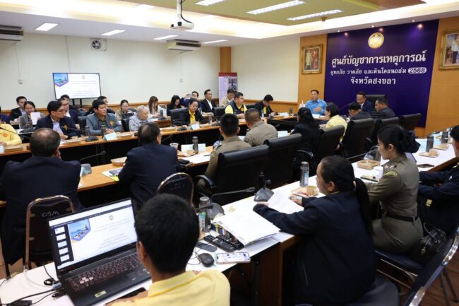 ในด้านความมั่นคง จังหวัดสงขลาแบ่งพื้นที่ออกเป็น 3 ส่วน ได้แก่ พื้นที่ชายแดนที่เชื่อมโยงจังหวัดชายแดนใต้ (อำเภอจะนะ เทพา นาทวี และสะบ้าย้อย) พื้นที่เศรษฐกิจหลัก และพื้นที่อื่น ๆ รวม 16 อำเภอ โดยใช้เครือข่ายกรรมการหมู่บ้านกว่า 10,000 คนดูแลความสงบเรียบร้อย ขณะเดียวกัน ยังเตรียมต้อนรับเอกอัครราชทูตกว่า 22 ประเทศที่จะลงพื้นที่เพื่อเสริมสร้างความเชื่อมั่นด้านเศรษฐกิจและการท่องเที่ยว