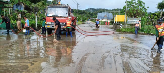 เมื่อวันที่ 18 กันยายน 2568 ศูนย์อำนวยการจิตอาสาพระราชทานภาค 3 ติดตามสถานการณ์อุทกภัยในพื้นที่จังหวัดตาก โดย เมื่อวันที่ 17 กันยายน 2568 นายสุวรรณ นนท์คำ นายกเทศมนตรีตำบลอุ้มผาง ได้มอบหมายให้ เจ้าหน้าที่เทศบาลตำบลอุ้มผาง ลงพื้นที่เพื่อดำเนินการฉีดล้างทำความสะอาดดินโคลนที่ทับถมบนถนนสายหลักภายในเขตเทศบาล หลังจากเกิดเหตุน้ำหลากในช่วงเวลาประมาณ 03.30 น. เพื่อให้ประชาชนสามารถใช้เส้นทางสัญจรไปมาได้ตามปกติอย่างปลอดภัย ซึ่งได้ดำเนินการแล้วเสร็จในเวลา 10.50 น. ภายหลังจากที่เสร็จสิ้นภารกิจทำความสะอาดถนนแล้ว เจ้าหน้าที่ได้เร่งเข้าไปดำเนินการฉีดล้างทำความสะอาดบ้านเรือนประชาชนที่ได้รับผลกระทบจากเหตุน้ำหลาก เพื่อบรรเทาความเดือดร้อน ลดความเสี่ยงด้านสุขอนามัย และคืนสภาพความเป็นระเบียบเรียบร้อยให้กับชุมชน ทั้งนี้ เทศบาลตำบลอุ้มผางยังคงติดตามสถานการณ์อย่างใกล้ชิด และจะดำเนินการให้ความช่วยเหลือประชาชนในทุกด้านอย่างต่อเนื่อง