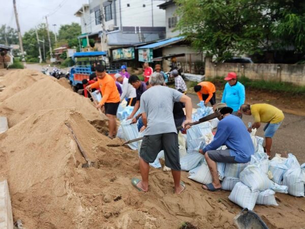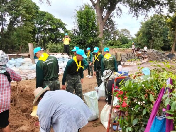 โดย กำลังพลจิตอาสาภัยพิบัติจากกองพันทหารม้าที่ 28 กองพลทหารม้าที่ 1 ส่งกำลัง ช่วยกรอกบรรจุกระสอบทรายและช่วยขนทรายไปวางกั้นแม่น้ำป่าสักที่บ้านท่ากกแก หมู่ที่ 8 เพื่อเสริมคันกั้นแม่น้ำป่าสัก รวมถึงทหารจิตอาสาและประชาชนในเขตเทศบาลเมืองหล่มสัก เริ่มออกมาช่วยกันกรอกกระสอบทราย ในศูนย์กู้ภัยสมาคมกกไทร อำเภอหล่มสัก จังหวัดเพชรบูรณ์