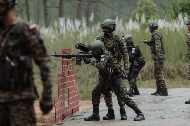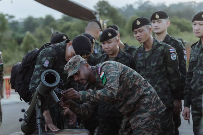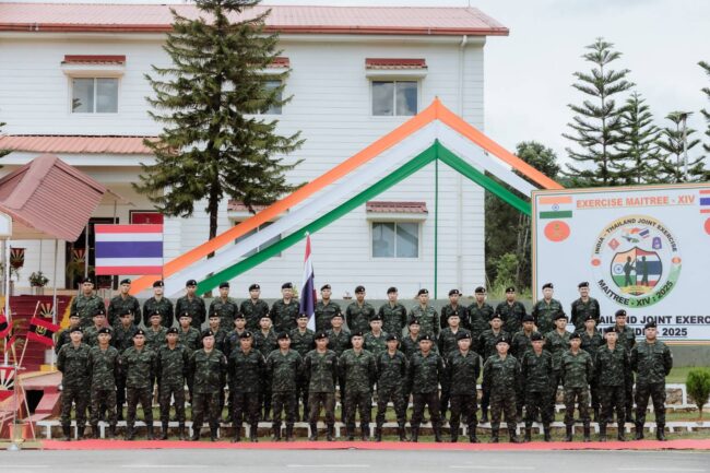 กองทัพบกไทย ร่วมกับ กองทัพบกอินเดีย จัดการฝึกผสมร่วมกัน ภายใต้รหัส “MAITREE 2025” ประจำปี 2568 ในช่วงวันที่ 31 สิงหาคม – 15 กันยายน 2568 ณ Umroi Cantonment เมือง อุมรอย รัฐเมฆาลัย สาธารณรัฐอินเดีย เป็นการฝึกตามโครงการฝึกระหว่างหน่วยของกองทัพบกไทย กับกองทัพมิตรประเทศ โดยมีวัตถุประสงค์ ดังนี้ 1) เพื่อส่งเสริมความสัมพันธ์ทางการทหาร และการทำงานร่วมกัน ในระดับยุทธวิธี 2) เพื่อเพิ่มขีดความสามารถส่วนบุคคลในการปฏิบัติการร่วมกับกำลังทหาร 3) เพื่อแลกเปลี่ยนความรู้, ประสบการณ์, เทคนิคการปฏิบัติทางการทหารแนวความคิดในการปฏิบัติการและการแลกเปลี่ยนวัฒนธรรมของทั้งสองประเทศ และ 4) เพื่อฝึกแผนปฏิบัติการร่วม ตลอดจนการฝึกควบคุมบังคับบัญชาหน่วยกำลังผสม มีผู้เข้าร่วมการฝึกฯ จำนวน 225 นายประกอบด้วย ฝ่ายไทย จำนวน 53 นาย และฝ่ายอินเดีย จำนวน 172 นาย