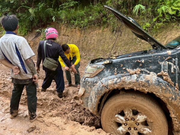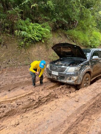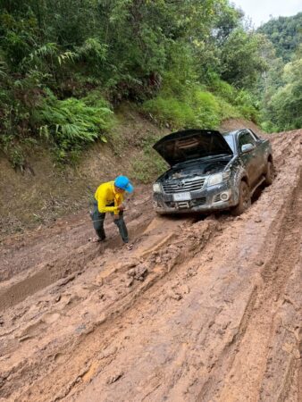 จิตอาสาตำรวจตระเวนชายแดนที่ 34 ช่วยอำนวยความสะดวก ส่ง ผู้ป่วยตั้งครรภ์ใกล้คลอด หมู่บ้านบนดอยอำเภอท่าสองยาง จังหวัดตาก ส่งโรงพยาบาลท่าสองยาง ท่ามกลางสายฝนที่ตกหนัก