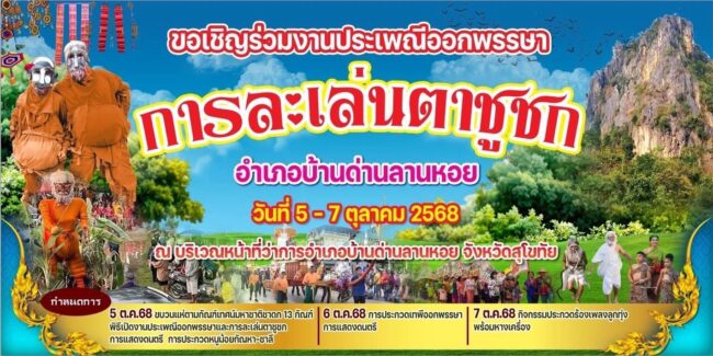 อำเภอบ้านด่านลานหอยขอเชิญเที่ยวงานประเพณีออกพรรษาและการละเล่นตาชูชก ประจำปี 2569วันอาทิตย์ที่ 5 ตุลาคม 2568
