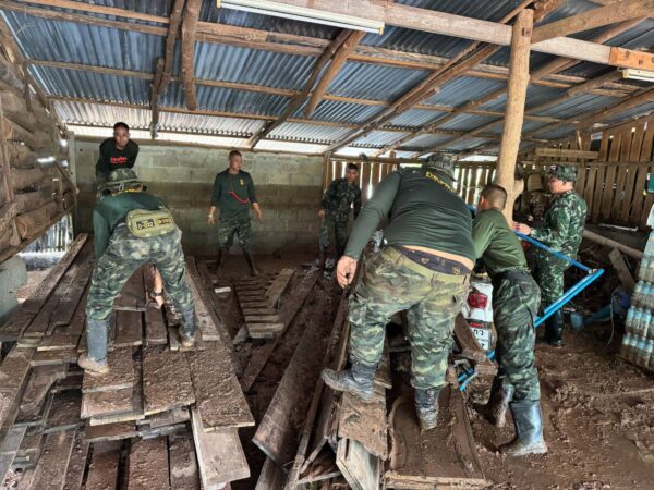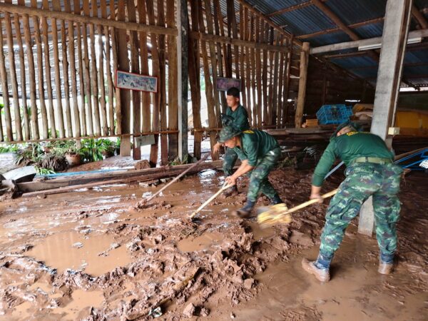 แล ะกองพันทหารม้าที่ 7 กรมทหารม้าที่ 2 จัดกำลังพล จำนวน 50 นาย ดำเนินการช่วยเหลือประชาชนที่ประสบอุทกภัยน้ำป่าไหลหลาก ออกจากพื้นที่เสี่ยงมายังพื้นที่ปลอดภัยบริเวณศูนย์พักพิง ปัจจุบันสามารถ นำประชาชนที่ตกค้าง ออกมายังพื้นที่ปลอดภัยได้ทั้งหมด พร้อมทั้งนำจิตอาสาภัยพิบัติ ช่วยเหลือประชาชน ฉีดล้างทำความสะอาดบ้าน และ ร่วมค้นหาประชาชนผู้สูญหายปัจจุบันพบศพแล้ว 1 รายเพศหญิง (อยู่ในระหว่างการพิสูจน์ทราบตัวบุคล)ค งเหลือสูญหายจำนวน 4 ราย