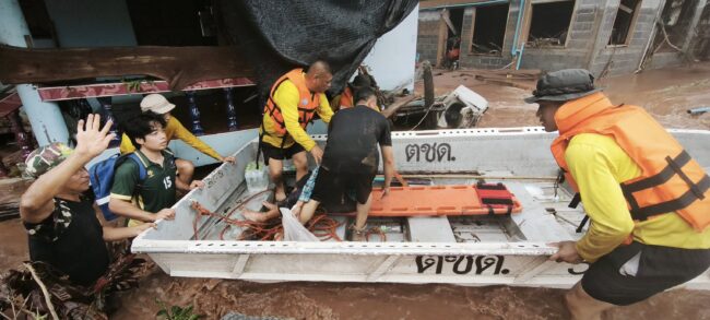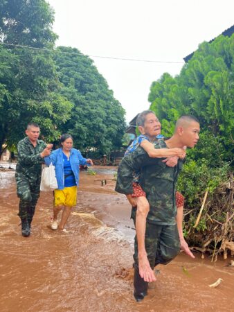 ขณะที่หน่วยกู้ภัยจากหลากหลายหน่วยงาน บูรณาการร่วมกับฝ่ายปกครอง และหน่วยทหาร เข้าช่วยเหลือผู้ป่วยติดเตียง และชาวบ้านติดเกาะ จำนวน 40 ราย บ้านนากลุำ่ ตำบลน้ำไคร่ อำเภอน้ำปาด จังหวัดอุตรดิตถ์ รวมถึงหน่วยกู้ภัยพิษณุโลก มูลนิธิประสาทบุญสถาน พร้อมกำลังเจ้าหน้าที่อาสาสมัครและเรือกู้ภัย เข้าช่วยเหลือชาวบ้านตำบลน้ำอ่าง อำเภอตรอน จังหวัดอุตรดิตถ์ ก่อนระดับน้ำสูงเพิ่มขึ้นภายหลัง