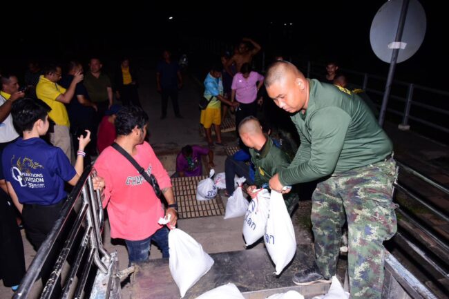 เมื่อวันที่ 1 ตุลาคม 2568 พลตรี นพดล วัชรจิตบวร ผู้บัญชาการมณฑลทหารบกที่ 39/ ผู้บัญชาการศูนย์บรรเทาสาธารณภัยมณฑลทหารบกที่ 39 จัดกำลังพลชุดปฏิบัติการบรรเทาสาธารณภัยสนับสนุน องค์การบริหารส่วนตำบลวัดจันทร์ ดำเนินกรอกกระสอบทราย และทำแนวเสริมป้องกันน้ำล้นตลิ่ง ร่วมกับ เทศบาลตำบลวัดจันทร์ เทศบาลตำบลท่าทอง และเทศบาลตำบลท่าโพธ์ เพื่อป้องกันตามแนวริมแม่น้ำน่าน และออกตรวจจุดล่อแหลมที่น้ำอาจจะเอ่อล้นตริ่งเข้าท่วมในเขตเมืองได้ พร้อมหารือ องค์กรปกครองส่วนท้องถิ่นในพื้นที่เสี่ยง เพื่อช่วยกันหาทางร่วมกันป้องกันและแก้ปัญหาไม่ให้เกิดความเดือดร้อนกับประชาชนในพื้นที่ต่อไป ณ องค์การบริหารส่วนตำบลวัดจันทร์ อำเภอเมือง จังหวัดพิษณุโลก