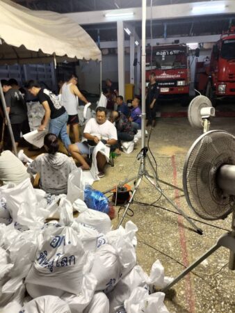 ขณะที่ชุมชนริมน้ำ เช่น หมู่ 4 ตำบลหัวรอ (ชุมชนบ้านแม้วเตาไห) อำเภอเมือง จังหวัดพิษณุโลก นายโสภณ แสงตาหล้า ผู้ใหญ่บ้าน ได้ระดมชาวบ้านนำกระสอบทรายที่ได้รับการสนับสนุนจากวัดโพธิ์และ องค์การบริหารส่วนจังหวัดพิษณุโลก มาอุดท่อระบายน้ำเพื่อป้องกันน้ำหนุนจากแม่น้ำ และติดตั้งเครื่องสูบน้ำเตรียมพร้อมรับมือสถานการณ์ตลอดทั้งคืน เนื่องจากเป็นที่ลุ่มต่ำ ก่อนถึงตัวเมืองพิษณุโลก