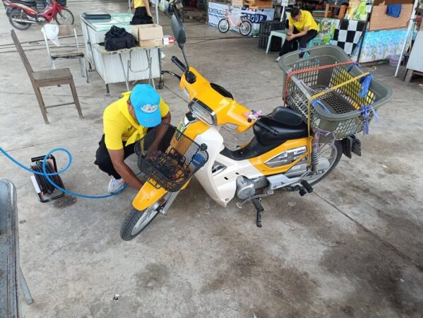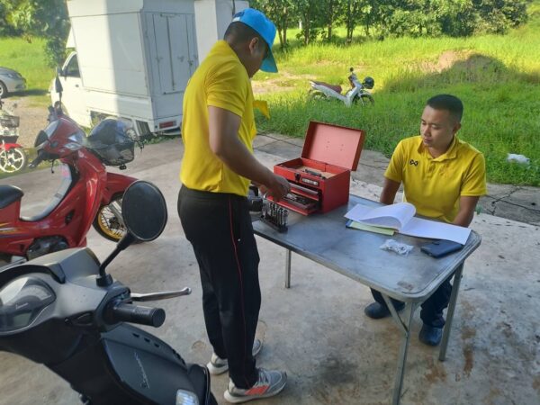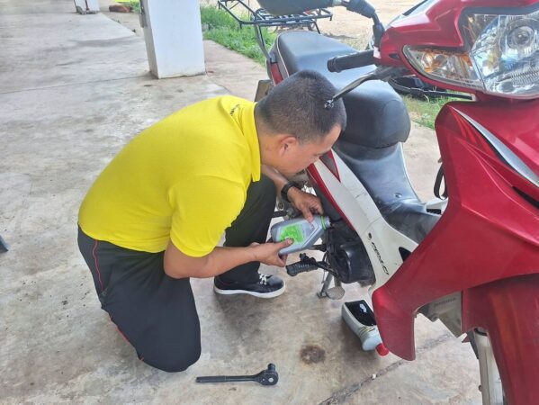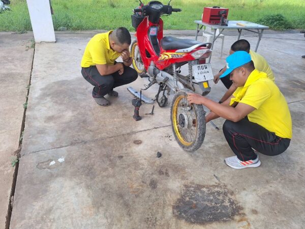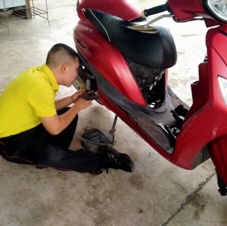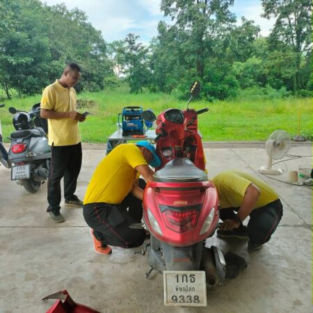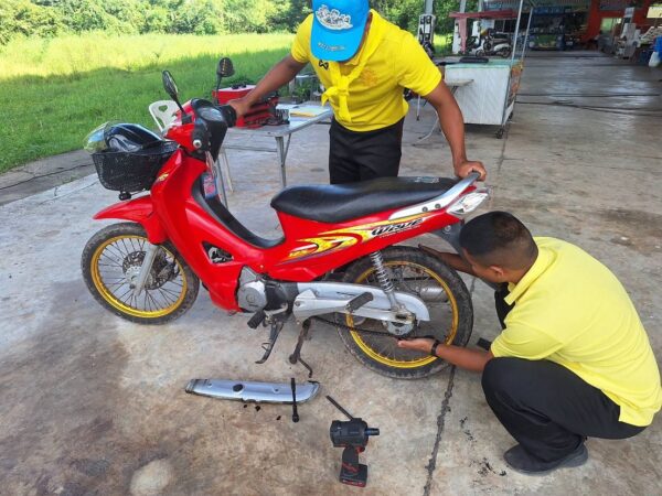 โดยได้มีการซ่อม เครื่องยนต์เล็กรถจักรยานยนต์ ถ่ายน้ำมันเครื่อง รถจักรยานยนต์ เติมลมยาง รถจักรยานยนต์ ปรับตั้งเบรคหลัง เปลี่ยนชุดปั้มติ๊ก เป่ากรองอากาศ เปลี่ยนชุดปั้มติ๊ก เปลี่ยนหลอไฟหน้า