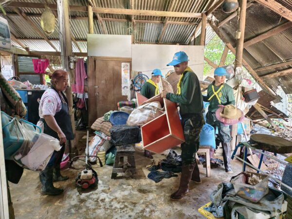 เมื่อวันที่ 2 ตุลาคม 2568 ศูนย์บรรเทาสาธารณภัยมณฑลทหารบกที่ 35 มอบหมายให้ กรมทหารม้าที่ 2 จัดกำลังพลจิตอาสาพระราชทาน ร่วมกับ องค์การบริหารส่วนตำบลท่าปลา และผู้นำชุมชน ลงพื้นที่เข้าให้การช่วยเหลือฟื้นฟู ทำความสะอาดบ้านเรือนของประชาชน ในพื้นที่ บ้านน้ำคอม หมู่ 3, บ้านน้ำสิงห์ใต้ หมู่ 5 และบ้านห้วยเลิศ หมู่ 12 ตำบลท่าปลา อำเภอท่าปลา จังหวัดอุตรดิตถ์ ที่ได้รับผลกระทบจากอิทธิพลพายุดีเปรสชัน “บัวลอย” ในห้วงที่ผ่านมา ซึ่งปัจจุบันดำเนินการทำความสะอาดบ้านเรือนของประชาชนเสร็จเรียบร้อย จำนวน 8 หลังคาเรือน