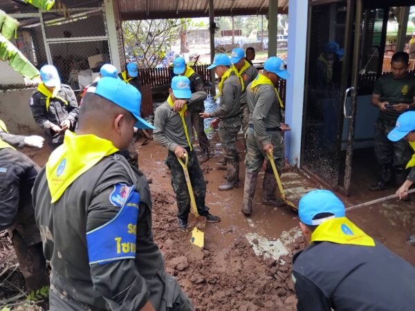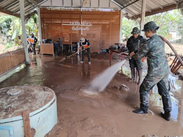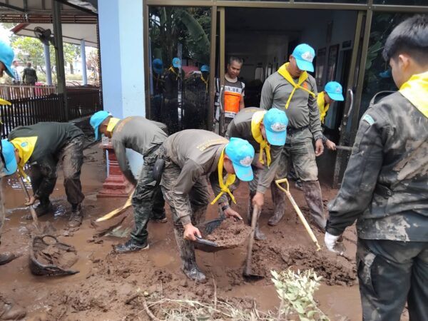 โดยได้ดำเนินการ จัดกำลังพลร่วมขนย้ายสิ่งของ และรถบรรทุกน้ำของหน่วย ฉีดพ่นน้ำล้างดินโคลนและทำความสะอาดฟื้นฟูบ้านเรือนของประชาชน, โรงเรียนนากล่ำ, โรงพยาบาลส่งเสริมสุขภาพตำบลนากล่ำ, ที่ทำการ องค์การบริหารส่วนตำบลนากล่ำ ที่ถูกโคลนถล่ม พร้อมทั้งจัดรถกู้ซ่อมของหน่วย เข้านำรถยนต์และสิ่งของ ของประชาชน ที่ถูกดินโคลนทับถม ออกจากพื้นที่