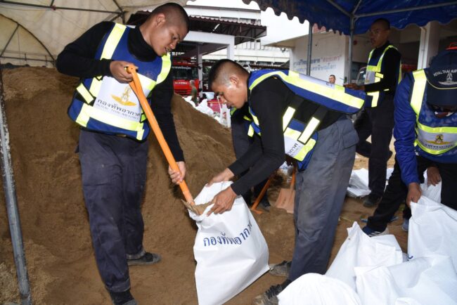ศูนย์บรรเทาสาธารณภัยกองบิน ๔๖ได้รับการประสานจาก ปภ.จว.พิษณุโลก ว่าระดับน้ำในแม่น้ำน่าน เพิ่มสูงขึ้นเท่ากับระดับตลิ่ง และอาจทำให้น้ำไหลเข้าท่วมเขตเทศบาลนครพิษณุโลก จึงขอรับการสนับสนุนกำลังพล ช่วยบรรจุกระสอบทราย เพื่อนำไปสร้างแนวคันกั้นน้ำ