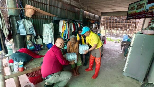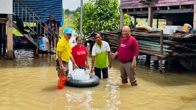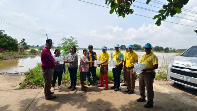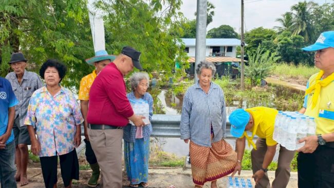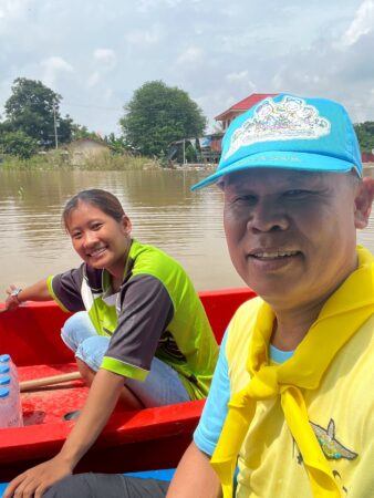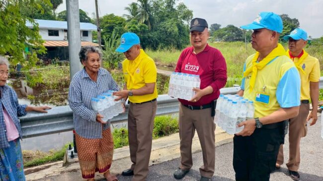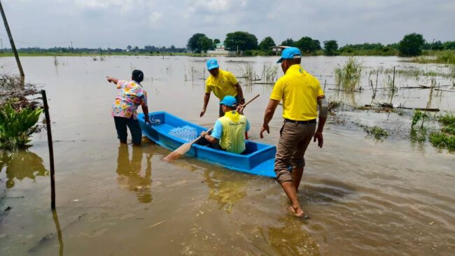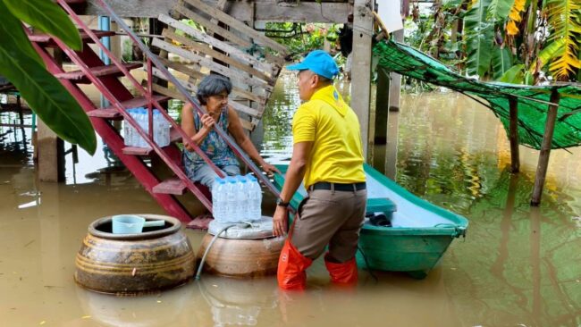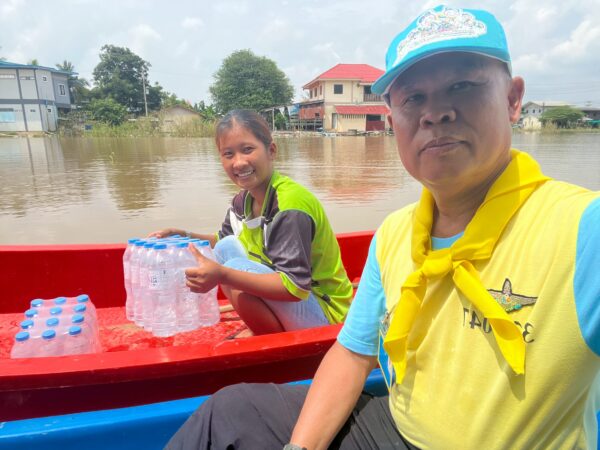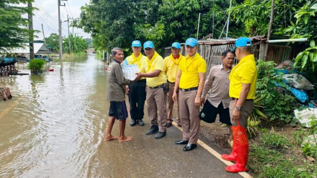 ตำรวจจิตอาสาภัยพิบัติสถานีตำรวจภูธรเมืองอุทัยธานี พร้อมผู้นำชุมชน ให้ความช่วยเหลือแจกสิ่งของแก่ประชาชนผู้ประสบอุทกภัยในพื้นที่เมืองอุทัยธานี