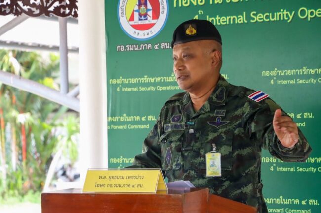 วันนี้ 6 ตุลาคม 2568 ที่ ศูนย์ประชาสัมพันธ์ กองอำนวยการรักษาความมั่นคงภายในภาค 4 ส่วนหน้า ค่ายสิรินธร ตำบลเขาตูม อำเภอยะรัง จังหวัดปัตตานี พันเอก ยุทธนาม เพชรม่วง โฆษกกองอำนวยการรักษาความมั่นคงภายในภาค 4 ส่วนหน้า ออกมาแถลงถึงเหตุการณ์เมื่อวันที่ 5 ตุลาคม 2568 เวลาประมาณ 18.29 น. เกิดเหตุคนร้ายไม่ทราบจำนวน ใช้อาวุธปืนไม่ทราบชนิดและขนาด ปล้นร้านทองภายในห้างสรรพสินค้าบิ๊กซี อำเภอสุไหงโก-ลก จังหวัดนราธิวาส ส่งผลให้มีผู้ได้รับบาดเจ็บ 1 ราย คือ สิบเอก บุริศวร์ ระดาชัย สังกัดหน่วยเฉพาะกิจสันติสุข ถูกยิงได้รับบาดเจ็บขณะพยายามนำอาวุธประจำกายจากรถยนต์ของตนเองเข้าขัดขวาง เบื้องต้นได้นำส่งผู้บาดเจ็บไปรักษาที่โรงพยาบาลสุไหง-โกลก ปัจจุบันอาการพ้นขีดอันตรายแล้ว จากเหตุการณ์ดังกล่าว พลโท นรธิป โพยนอก แม่ทัพภาคที่ 4 / ผู้อำนวยการรักษาความมั่นคงภายในภาค 4 ขอแสดงความเสียใจต่อผู้ได้รับบาดเจ็บ และผู้ที่ประกอบการที่ได้รับผลกระทบทางเศรษฐกิจจากเหตุการณ์ของผู้ไม่หวังดี