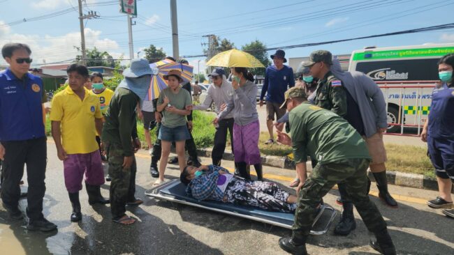 ตะพานหินโกลาหลทั้งอำเภอ น้ำน่านล้นตลิ่ง-พนังแตก-น้ำป่าเทือกเขาเพชรบูรณ์หลากสมทบ ทะลักท่วมทั้งชุมชน โรงพยาบาลสมเด็จพระยุพราชตะพานหิน เต็มพื้นที่ ทหารมณฑลทหารบกที่ 36 ร่วม แพทย์-พยาบาล ทหาร ตำรวจตะพานหิน ฝ่ายปกครอง จิตอาสา ขนกระสอบทรายกั้นน้ำไม่พอ ต้องหามผู้ป่วยจากรถฉุกเฉินลงเปลส่งเข้าโรงพยาบาลกันวุ่น