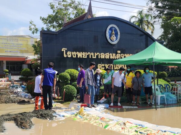 โดยในขณะนี้ยังมีน้ำท่วมขังด้านหน้าอาคารทางการแพทย์ระดับน้ำสูงประมาณ 30 เซนติเมตร โดยมีการกำหนดให้รถผู้ที่มาเยี่ยมผู้ป่วยต้องจอดภายนอกโรงพยาบาล ส่วนรถส่งผู้ป่วยฉุกเฉินยังสามารถเดินทางเข้าไปส่งผู้ป่วยได้