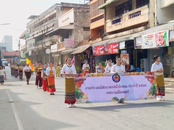 วันพุธที่ 8 ตุลาคม 2568 เวลา 07.00 น. พระราชเขมากร,รศ.ดร. เจ้าคณะจังหวัดแพร่ เจ้าอาวาสวัดพระบาทมิ่งเมืองวรวิหาร ประธานฝ่ายสงฆ์ พร้อมด้วย นายคุณากร คชหิรัญ รองผู้ว่าราชการจังหวัดแพร่ ประธานฝ่ายฆราวาส นางละวาดอร ศรีวรรธนะ รองนายกเหล่ากาชาดจังหวัดแพร่/รองแม่ประธานแม่บ้านมหาดไทยจังหวัดแพร่ ประกอบพิธีทำบุญตักบาตรงานประเพณีตักบาตรเทโวโรหณะ ประจำปี 2568 ณ วัดชัยมงคล ตำบลในเวียง อำเภอเมืองแพร่ จังหวัดแพร่