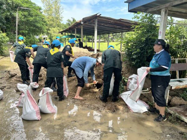 เมื่อวันที่ 8 ตุลาคม 2568 หน่วยฝึกนักศึกษาวิชาทหารมณฑลทหารบกที่ 39 นำนักศึกษาวิชาทหารจิตอาสาภัยพิบัติ จำนวน 20 นาย จัดกิจกรรม รด.จิตอาสาช่วยเหลือบรรเทาสาธารณภัย สนับสนุนการบรรจุกระสอบทราย เพื่อสร้างผนังป้องกันน้ำที่จะล้นตลิ่งร่วมกับคณะครู โรงเรียนวัดห้วงกระไดและประชาชนในพื้นที่ ณ โรงเรียนห้วงกระได ตำบลชุมแสงสงคราม อำเภอบางระกำ จังหวัดพิษณุโลก ซึ่งทางโรงเรียนวัดห้วงกระได ได้จัดเลี้ยงอาหารกลางวันให้กับ รด.จิตอาสาอีกด้วย
