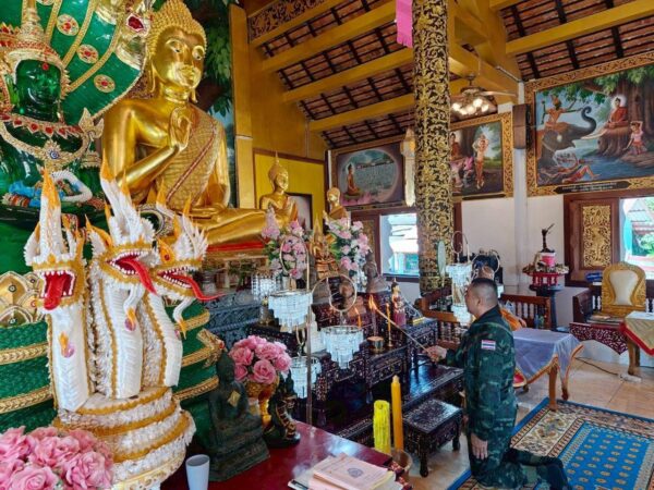 เมื่อวันที่ 11 ตุลาคม 2568 พันเอก อำนาจ วชิรศักดิ์โสภานะ ผู้บังคับหน่วยเฉพาะกิจไชยานุภาพ กองกำลังผาเมือง มอบหมายให้ รองผู้บังคับหน่วยเฉพาะกิจไชยานุภาพ นำกำลังพลจิตอาสาพระราชทาน ร่วมทำบุญ และฟังธรรมเทศนา พร้อมร่วมกิจกรรมจิตอาสาพัฒนา ตามโครงการ 1 เดือน 1 วัด พัฒนาจิต เพื่อเป็นการพัฒนาขวัญของกำลังพล ให้มีจิตใจที่ดี อยู่ในศีลธรรมและมีจรรยาบรรณที่ดี พร้อมทั้งส่งเสริมสร้างความเป็นผู้มีความเสียสละ มีจิตสาธารณะ ณ วัดดอนศรีสะอาด ตำบลเชียงดาว อำเภอเชียงดาว จังหวัดเชียงใหม่