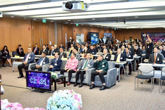 สำหรับการจัดเสวนาทางวิชาการในช่วงเช้า มีการอภิปรายในหัวข้อ “เทคโนโลยีในศตวรรษที่ 21 กับมิติความมั่นคงภายใต้บทเรียน CLASS (Cyber-Land-Air-Space-Sea)” ได้รับเกียรติจากวิทยากรผู้ทรงคุณวุฒิ ประกอบด้วย พลโท ชาติชาย ชัยเกษม ผู้บัญชาการหน่วยบัญชาการไซเบอร์ทหาร กองบัญชาการกองทัพไทย ผู้เชี่ยวชาญด้านความมั่นคงในมิติ Cyber พลโท ภราดร พัฒนถาบุตร อดีตเลขาธิการสภาความมั่นคงแห่งชาติ ผู้เชี่ยวชาญด้านความมั่นคงในมิติ Land พลอากาศเอก มานัต วงษ์วาทย์ อดีตผู้บัญชาการทหารอากาศ ผู้เชี่ยวชาญด้านความมั่นคงในมิติ Air และพลเรือเอก จิรพล ว่องวิทย์ อดีตผู้บัญชาการทหารเรือ ผู้เชี่ยวชาญด้านความมั่นคงในมิติ Sea โดยมี นายก่อเขต จันทรเลิศลักษณ์ ผู้อำนวยการข่าวไทยพีบีเอส เป็นผู้ดำเนินรายการ