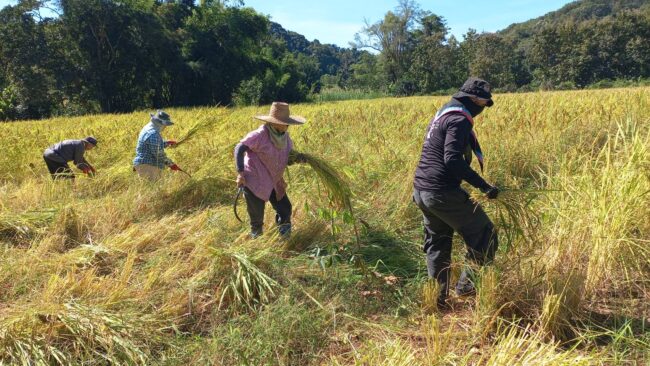 กองร้อยทหารพรานที่ 3205 นำกำลังพล ช่วยเหลือประชาชนเก็บเกี่ยวผลผลิตทางการเกษตร แปลงนาเกษตรกรในอำเภอสองแคว จังหวัดน่าน