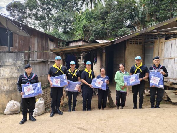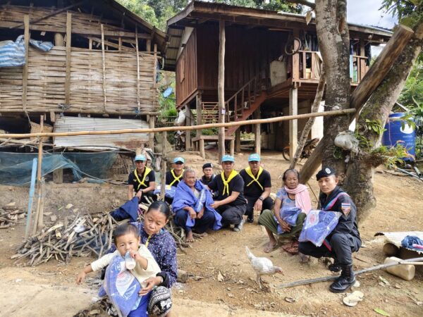 ในพื้นที่ บ้านห้วยทรายขาว ตำบลห้วยโก๋น อำเภอเฉลิมพระเกียรติ จังหวัดน่าน มอบผ้าห่มกันหนาว จำนวน 6 ราย และมอบผ้าห่มพร้อมถุงยังชีพ 1 ราย