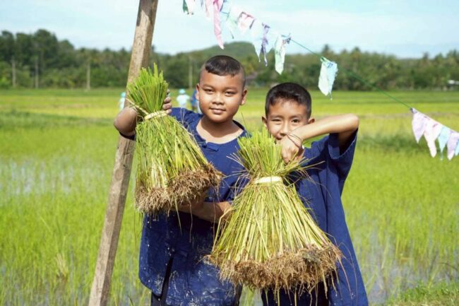 โครงการปลูกข้าวเพื่ออาหารกลางวัน “ดำนา โยนกล้า หว่านข้าว ปีที่ 4” เพื่อผลิตข้าวที่ปลอดภัยและไว้บริโภคเอง ทั้งยังเป็นการส่งเสริมให้นักเรียนได้เรียนรู้กระบวนการปลูกข้าวตั้งแต่เริ่มต้นจนถึงการเก็บเกี่ยว นอกจากจะเป็นการสนับสนุนอาหารกลางวันอย่างยั่งยืนแล้ว ยังปลูกฝังคุณค่าของการทำงานอย่งอดทน การใช้ทรัพยากรที่มีอย่างคุ้มค่า และการแบ่งปันที่แท้จริง ซึ่งเป็นพื้นฐานสำคัญของการดำเนินชีวิตในชุมชน ทั้งยังน้อมนำหลักปรัชญาของเศรษฐกิจพอเพียง ที่มุ่งเน้นการผลิตเพื่อการบรโภคในครัวเรือน และการใช้ทรัพยากรอย่างคุ้มค่า และเห็นคาวมสำคัญของการทำงานร่วมกันเป็นทีม